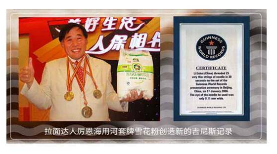 (拉面大王-厉恩海 与“河套”牌雪花粉,创造了四次吉尼斯世界纪录图片)